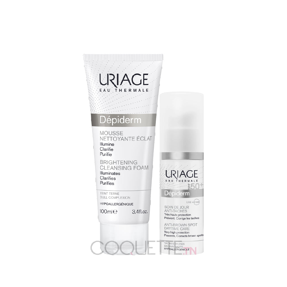 URIAGE DEPIDERM Mousse nettoyante éclat 100ml + URIAGE DEPIDERM SPF 50 Soin de jour anti-taches, 30ml