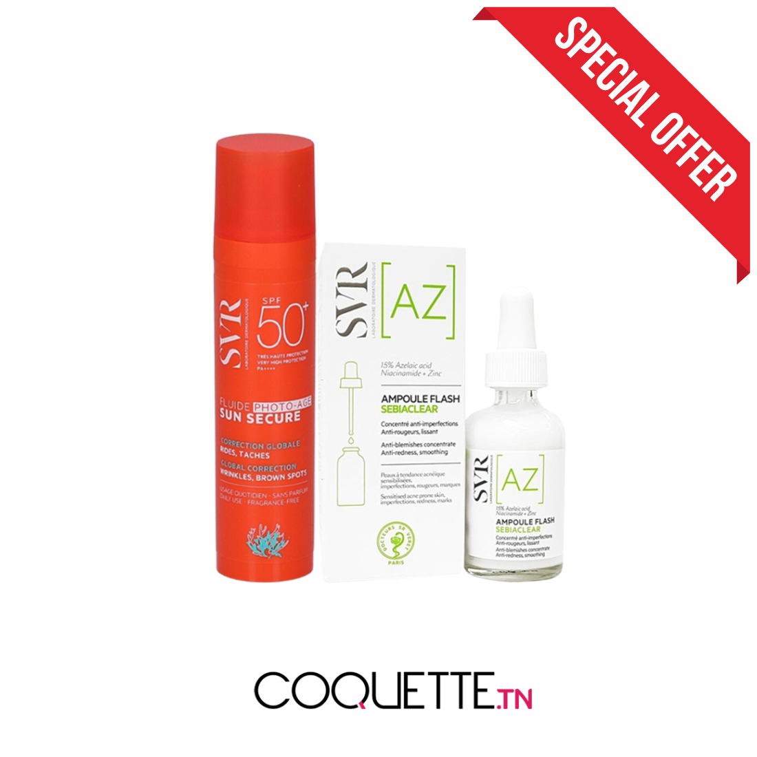 SVR PACK Ecran Fluide Photo-Age spf50+ + Sebiaclear Ampoule Flash AZ 30ML