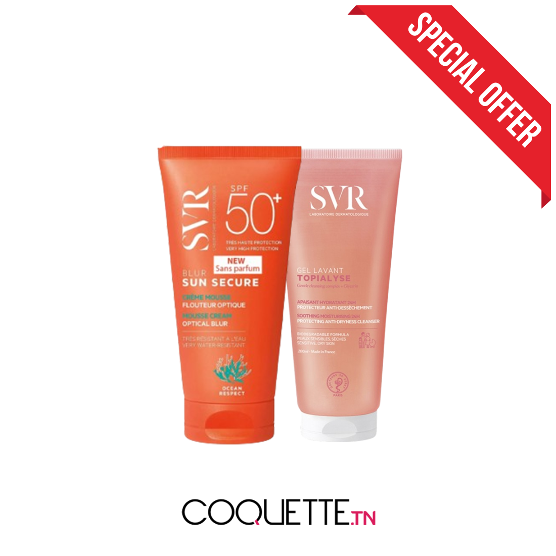 SVR PACK Sun Secure Blur Sans Parfum 50ML + Topialyse Gel Lavant 200ML