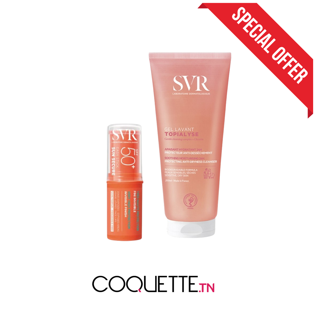 SVR PACK Sun Secure Easy Stick SPF50+ 10G + TOPIALYSE GEL NETTOUANT 200ML