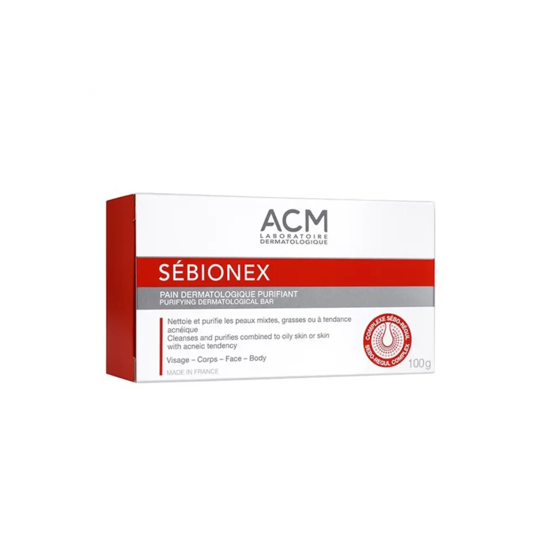 Le Pain Dermatologique Purifiant Sébionex des Laboratoires ACM est un nettoyant doux spécialement formulé pour les peaux mixtes à grasses ou à tendance acnéique. Grâce à son complexe Sébo-Régul, il élimine efficacement les impuretés et l’excès de sébum tout en respectant l’équilibre cutané. Sans savon et au pH physiologique, il offre un nettoyage quotidien agréable, sans dessécher la peau.