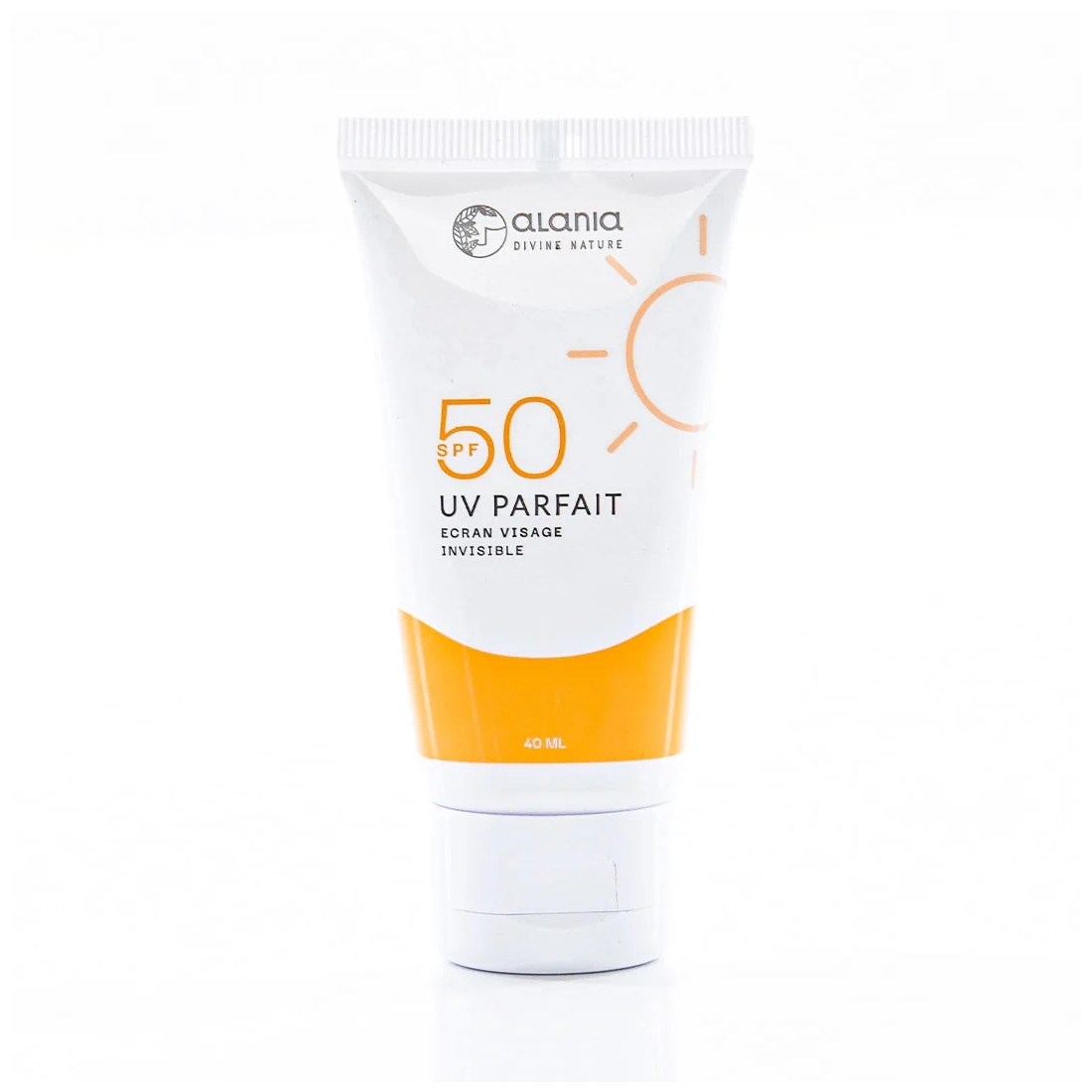 ALANIA UV PARFAIT Ecran Solaire Visage Invisible hydrate, protège votre peau des rayons UVA et UVB avec un indice de protection SPF50 et prévient l'apparition des taches brunes. Cette protection soalire s'étale facilement sur le visage et ne laisse pas d'effet collant.