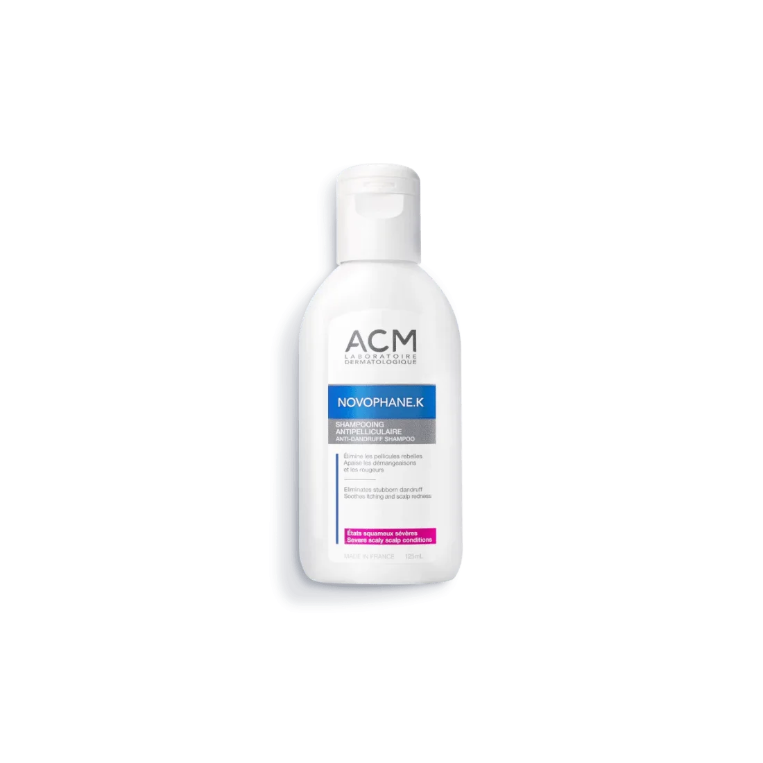 Le Shampoing Novophane K, des Laboratoires ACM, est spécialement formulé pour corriger les états squameux chroniques et/ou en plaques du cuir chevelu. Il convient particulièrement aux personnes souffrant de squames épaisses, de plaques érythémateuses et de démangeaisons intenses associées à certaines affections du cuir chevelu.